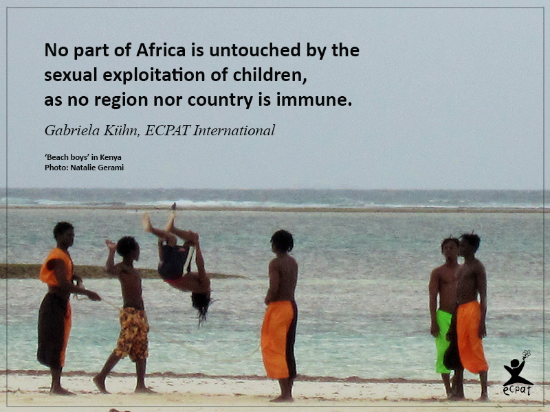 “Traveling child sex offenders often take advantage of poverty, social exclusion, weak laws and impunity. Victims can be exploited anywhere, including restaurants, hotels, bars, and massage parlours; on the street and in private; and at night and in broad daylight. No part of Africa is untouched by this crime, as no region nor country is immune,” said Gabriela Kühn, Head of Program at ECPAT for the Sexual Exploitation of Children in Travel and Tourism.