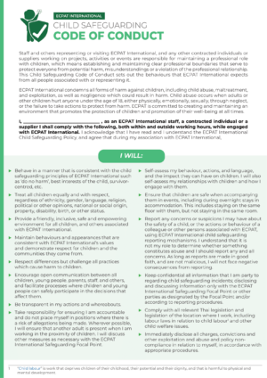 Child Safeguarding is about doing all we can to ensure the children we are in contact with, directly or indirectly, are not harmed as a consequence of an action (or the lack of it) conducted by an individual or an organization acting on behalf of ECPAT International.