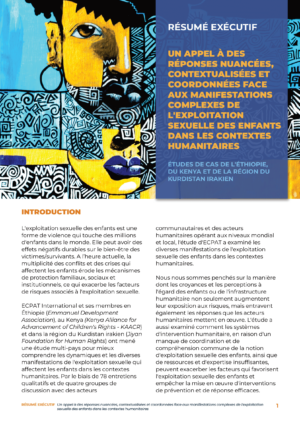 ECPAT International, in collaboration with ECPAT members in Ethiopia (Emmanuel Development Association), Kenya (Kenya Alliance for Advancement of Children’s Rights – KAACR) and the Kurdistan Region of Iraq (Jiyan Foundation for Human Rights) has undertaken crucial research to dissect the complexities of sexual exploitation affecting children in these tumultuous contexts. Our findings provide essential insights into the challenges and call for immediate action.
