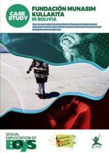 Consorcio ECPAT Bolivia is formed by Pastoral de Movilidad Humana (PHM) and Fundación Munasim Kullakita (FMK), two of the leading non-governmental organisations in Bolivia working against commercial sexual exploitation of children. Besides their programmes on CSEC, they are broadly recognised in the country for being co-chairs of Mesa El Alto contra la Violencia Sexual Comercial, a coalition of governmental and non-governmental organisations that lobbied for the legal reforms in 2011 on CSEC and trafficking in persons, and has remained since then to coordinate actions nationwide on the issue. Their main areas of intervention on the topic are: