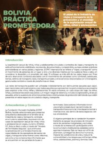 Bolivia has not ratified the UNWTO Framework Convention on Tourism Ethics nor the Council of Europe’s Lanzarote and Budapest Conventions.