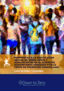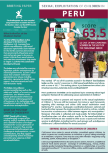 The expected result No. 14 of Peru’s National Action Plan for Childhood and Adolescence 2012-2021 is related to the eradication of sexual exploitation of children within the country. It makes specific references to the exploitation of children in prostitution, SECTT, and child sexual abuse materials.