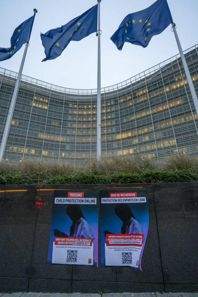 Brussels, Belgium – A group of child rights’ and survivors’ organisation have plastered ‘missing’ posters outside the Brussels offices of EU states believed to be wavering in their support for historic legislation to prevent and combat all child sexual abuse online, including France, Portugal, Finland, the Netherlands and Sweden.