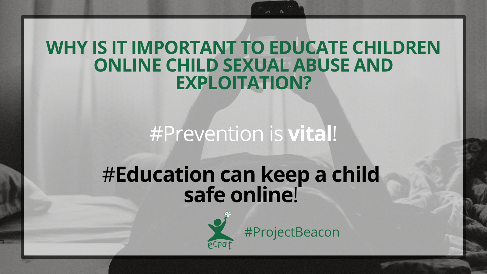 For this reason, since 2021, ECPAT International is advocating, through Project Beacon, to ensure child protection from sexual abuse and exploitation within the European Digital Services Act that is going to be finalised between April and May 2022- Additionally, Project Beacon advocates for a more comprehensive EU Strategy for a more effective fight against child sexual abuse.