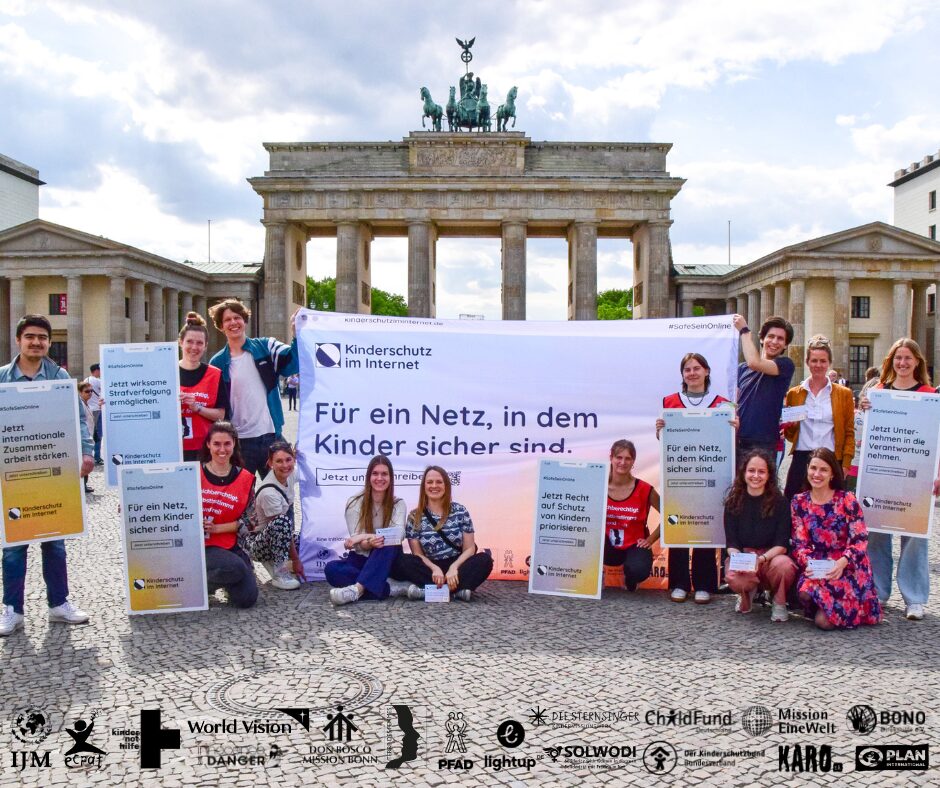 BERLIN — On Thursday, May 11, 2023, ECPAT Germany joined forces with the “Child Protection on the Internet” alliance, composed of 17 German non-governmental child rights and child protection organizations, in a day of action held at the Brandenburg Gate in Berlin. The day of action consisted in raising awareness on the issue of online child sexual abuse, while engaging in meaningful dialogues with both society and political representatives.