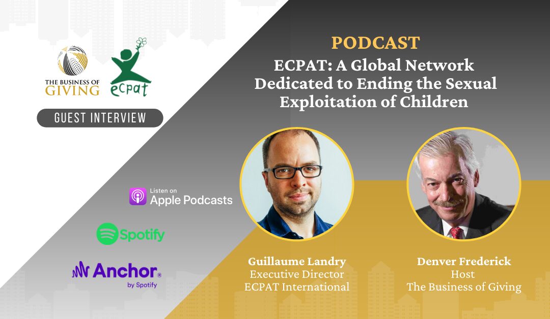 In April 2022, ECPAT’s Executive Director joined Denver Frederick, host of The Business of Giving Podcast, in a discussion on ECPAT’s work, the impact of our members, and the global trends ECPAT’s research has uncovered in the field of child sexual exploitation.