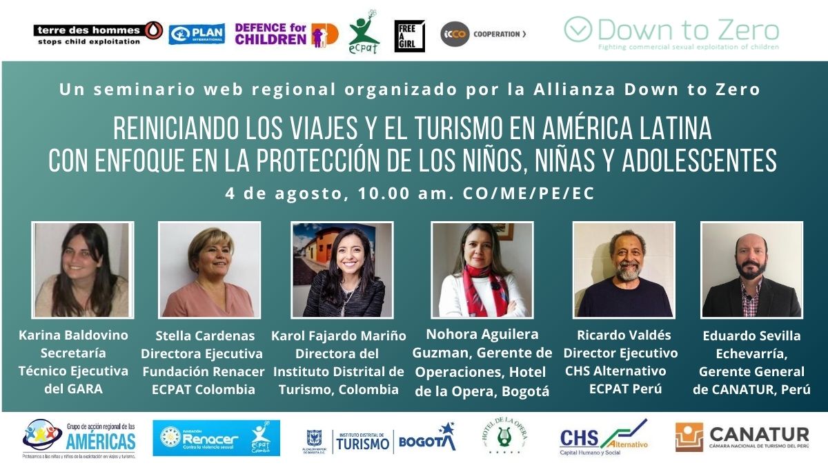 Durante el seminario, los socios representantes de la Alianza Down to Zero, los gobiernos y el sector de viajes y turismo en la región evaluarán los desafíos clave (incluyendo las implicaciones correspondientes a la pandemia) frente al progreso realizado hasta la fecha en materia de protección de niños, niñas y adolescentes. Asimismo, se comprometerán mediante una declaración conjunta a mantener la protección de niños, niñas y adolescentes como consideración primordial durante la fase de recuperación del sector.