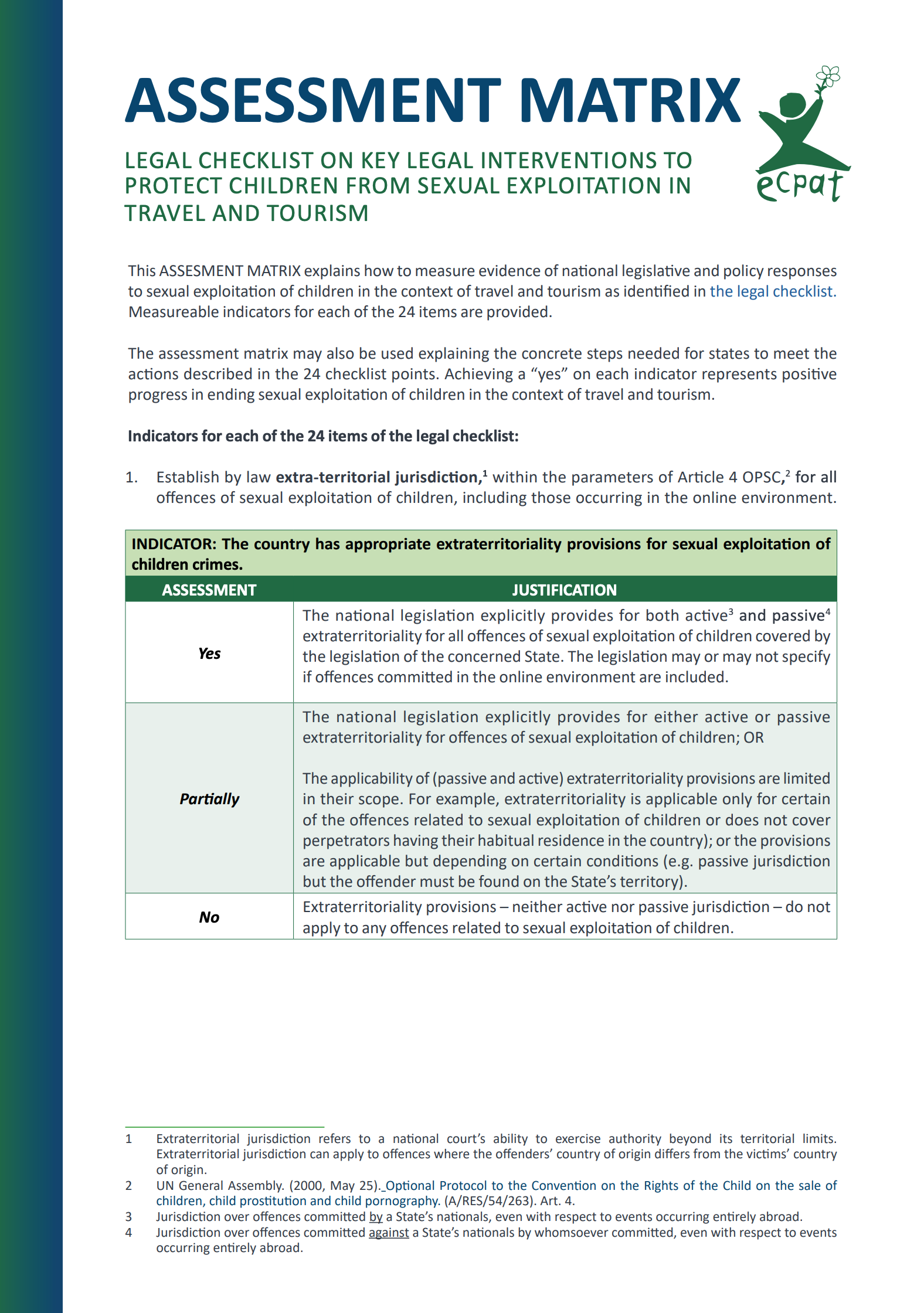 Legal Checklist: Key Legal Interventions to Protect Children From Sexual Exploitation in Travel and Tourism – ASSESSMENT MATRIX