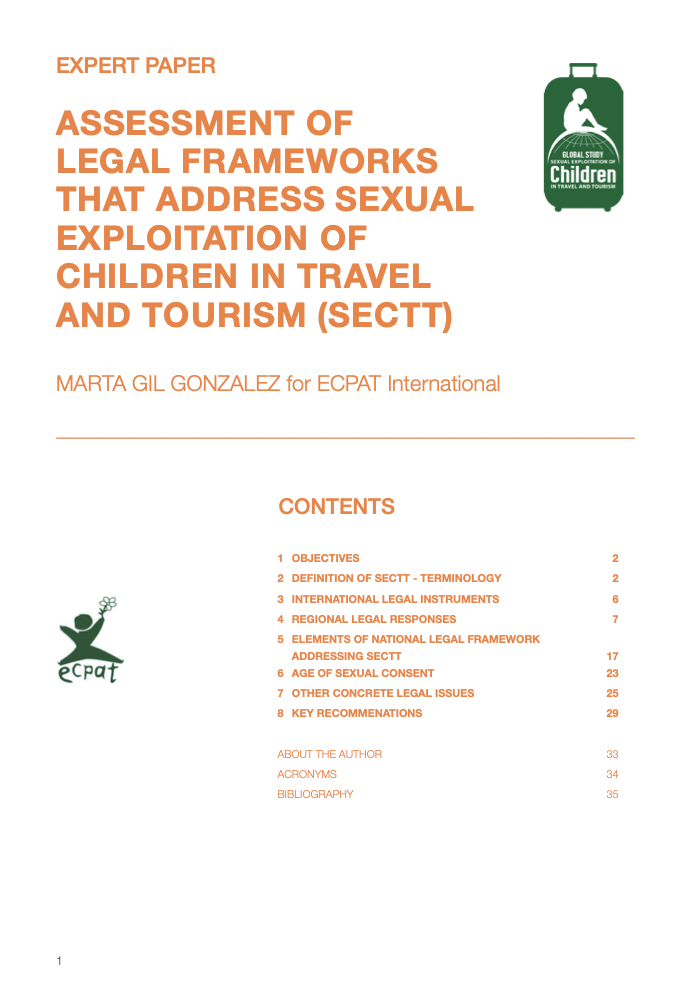 This report assess current international, regional and domestic legal responses to combat Sexual Exploitation of Children in Travel and Tourism (SECTT). The report also aims to highlight the main legal elements required to make these responses effective to help address and strengthen future interventions.