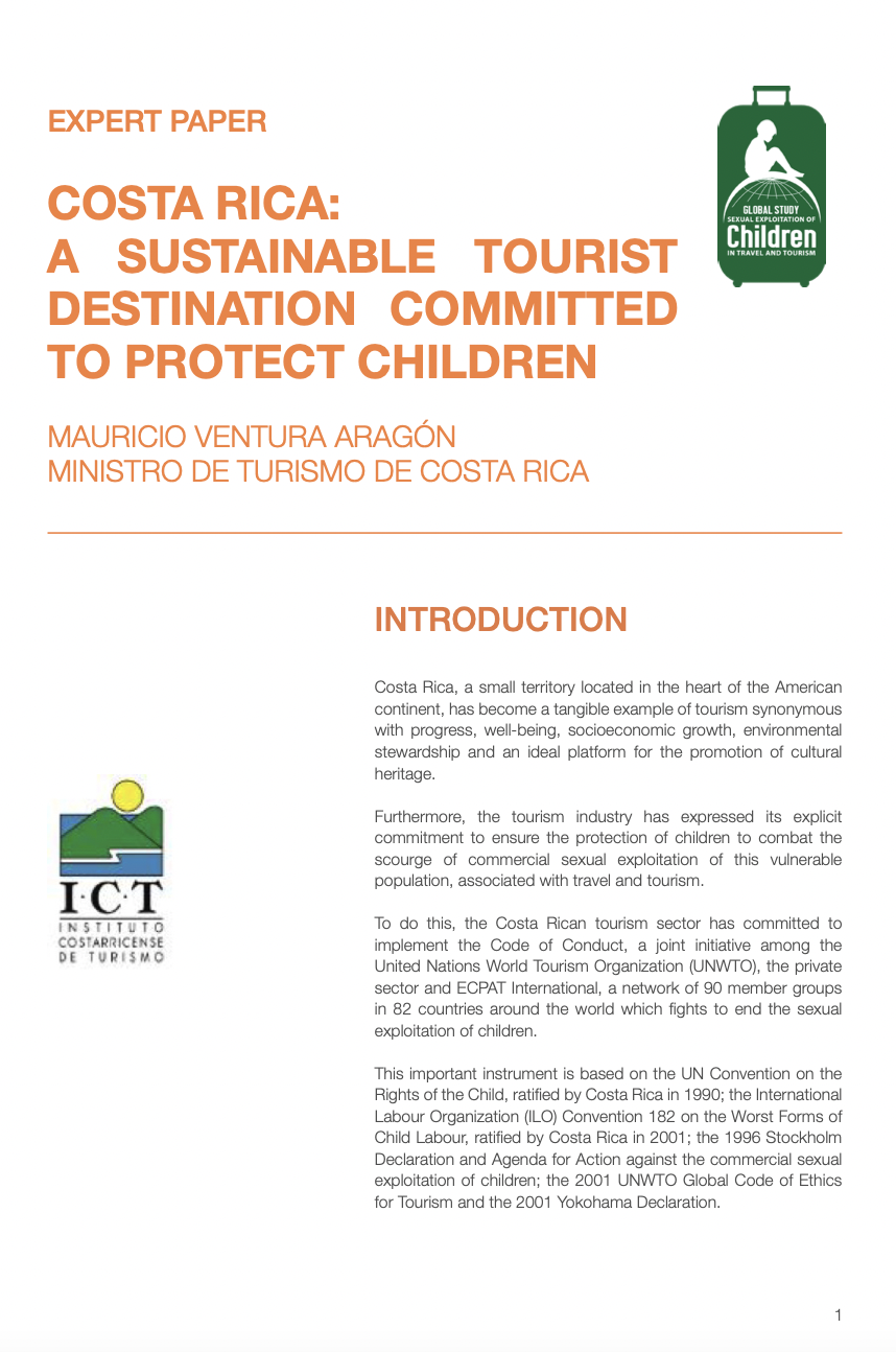 Expert Paper – Costa Rica is a Sustainable Tourist Destination Committed to Protecting Children