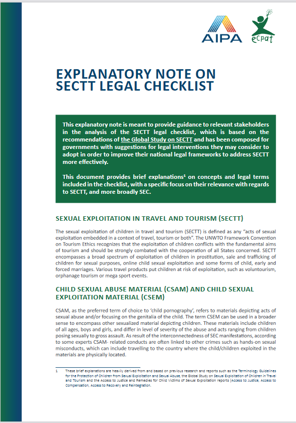 Legal Checklist: Key Legal Interventions to Protect Children from Sexual Exploitation in Travel and Tourism – EXPLANATORY NOTE