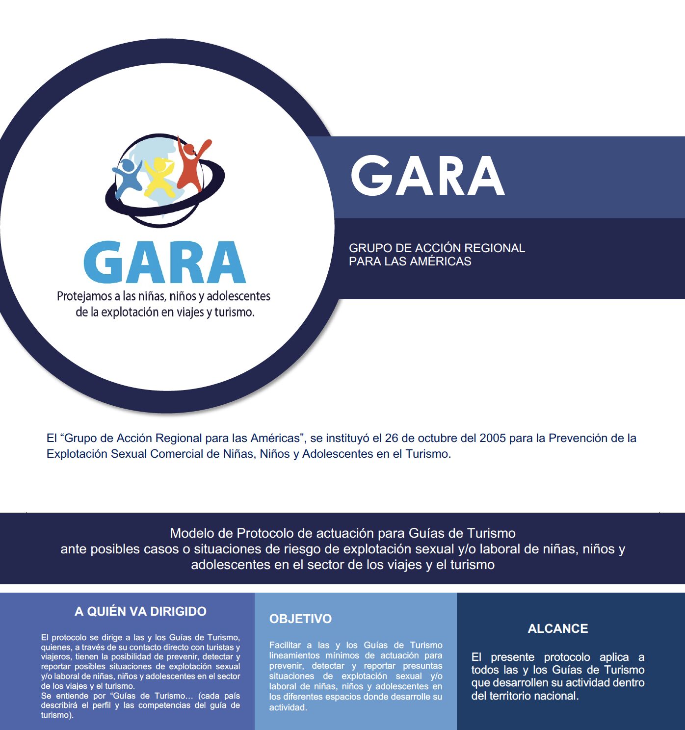 Se presenta el Modelo de Protocolo de actuación para Guías de Turismo ante posibles casos o situaciones de riesgo de explotación sexual y/o laboral de niñas, niños y adolescentes en el sector de los viajes y el turismo. Una herramienta que contiene lineamientos mínimos de actuación para los Guías de turismo a fin de prevenir, detectar y reportar presuntas situaciones de explotación sexual y/o laboral de niñas, niños y adolescentes en los diferentes espacios donde desarrollan su actividad.