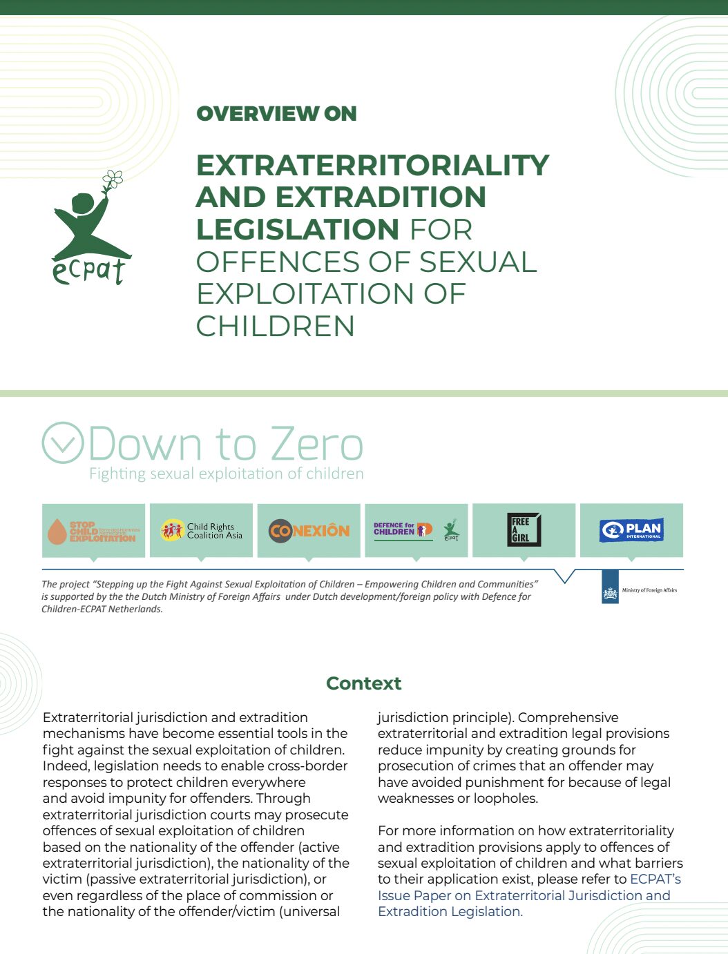 Extraterritorial jurisdiction and extradition mechanisms have become essential tools in the fight against the sexual exploitation of children. To protect children everywhere and avoid impunity for offenders, legislation needs to enable cross-border responses.
