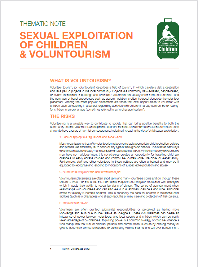 Volunteering is a valuable way to contribute to society that can bring positive benefits to both the community and the volunteer. But despite the best of intentions, certain forms of voluntourism, including orphanage tourism have been shown to have a range of harmful consequences, including increasing the risk of child sexual exploitation.