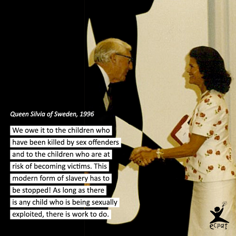 First World Congress on the Sexual Exploitation of Children in Stockholm, Sweden, 1996.